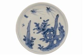 在了解了新科进士赐宴制度之后,我们再来看这幅瓷画就比较容易理解了。尽管历代官方将进士赐宴称为“闻喜宴”“恩荣宴”,但宋以后民间一直将它称作“琼林宴”。所以,清代瓷画也是根据“琼林宴”这个名称来构思画面的。北宋的“琼林宴”因在皇家花园“琼林苑”举办得名,图中画假山、花草、蜻蜓、飞燕等,正是要表达此处是“琼林苑”之意。特别值得注意的是假山中有两根长长的石笋,很可能是“琼林苑”的一个重要特征。图中的飞燕,除了是景色之一外,还是“宴”的示意法。“燕”与“宴”可谐音通假,这是清初瓷画的一个创新。将“琼林”花园与飞“燕”组合,巧妙地传达了《琼林宴图》的画意!