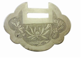 这枚锁片原是从江苏江都民间淘宝得来。江都的金银细工技艺在2008年被列为国家级“非遗”项目,从这枚锁片上依稀可以领略到这项传统技艺的风采。其制作年代虽然只有百年左右,整体含银量也不高,但因其品相完美,几乎未有太多使用,因此无论自藏赏玩,还是赠送友朋,都是非常适宜的。