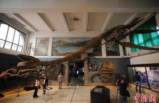 阿根廷博物馆展出巨型蛇颈龙骨架