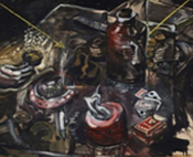 曾梵志的"面具"系列油画政治讽喻都极其明显。而《最后的晚餐》中少先队员不仅戴面具,而且手上沾满鲜血,政治讽喻更加强烈,自然又创造了中国"当代艺术"的新纪录。[详细]