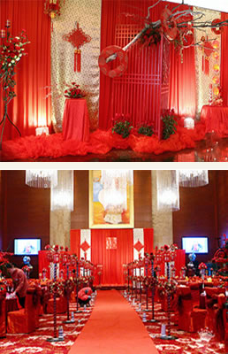 结婚当天按当时习俗执行的礼仪,就是婚礼。"久旱逢甘雨,他乡遇故知,洞房花烛夜,金榜题名时。"在我国历来把娶亲办喜事当成人生的一大乐事。为此男方主婚人都要出帖大请亲友,注明为第几男或第几孙"授室"。迎娶新娘用的是红缎绣花八人抬的大轿。轿前有成对座伞成对筛镜,二十四名或三十二名吹鼓手(包括八面大鼓),外加清音。再前有各种旗帜,肃静回避牌、对扇,若干对金灯以及金瓜、钺斧、朝天凳等,最前为一对开道锣。如新郎亲迎,则另加绿段绣花八人抬大轿一座,新郎端坐其中,行于红轿之前。至于随行人员,有大媒、伴郎、娶亲的、赞礼的等乘车随后,前往女方迎娶新娘。[全文]