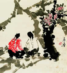 六、改头换位,移花接木。即以真迹作样本,将一件作品中的人物、走兽或景物移走、删改,改换或嫁接成其它内容,这样一件新作便出笼了。