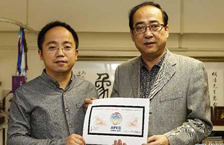 中国邮政于2014年11月10日发行“亚太经合组织第二十二次领导人非正式会议纪念邮票”1套1枚,邮票面值为1.20元。邮票构图重点突出2014年APEC会议的标志。左边为长城,右边为巍巍泰山和东升旭日,寓意APEC各经济体勇挑重担,合作发展朝气蓬勃。该套邮票由何洁、周岳设计,北京邮票厂胶版印制。[详细]