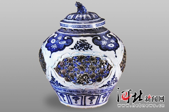 藏于河北省博物院的元青花釉里红盖罐。 河北省博物院供图