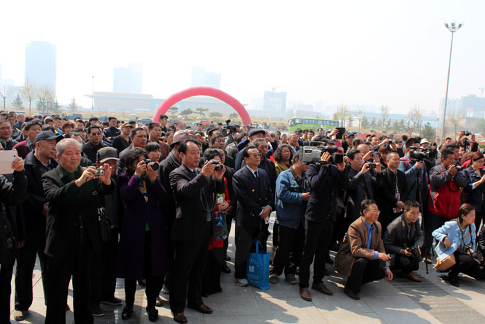历经四年创作完成的大型经典书画长卷《泰山胜迹图暨泰山胜迹诗联书法长卷》于4月10日在泰安市文化艺术中心,由中南海画册编辑委员会、中国水墨艺术研究院、中国楹联学会、西苑出版社、山东省美术家协会、中共泰安市委宣传部、泰安市文化广电新闻出版局、泰安市文学艺术界联合会主办了“中华胜迹文化行——泰山胜迹图诗联书画艺术展”开幕式。国家发展和改革委员会宏观经济研究院研究员、中国书法家协会理事袁守启,全国政协委员、中国文联主席团委员,中国书法家协会副主席赵长青,中南海画册编辑委员会主任,西苑出版社原社长、总编辑,中国水墨艺术研究院院长杨宪金,中国楹联学会会长、原新华社中广联党委书记蒋有泉,中国美术家协会理事、山东省美术家协会驻会常务副主席朱全增,泰山胜迹图主笔之一、中国美术家协会会员、中国书法家协会会员白崇然教授,泰山胜迹图主笔之一、中国水墨艺术研究院副院长刘越冬及泰安市有关领导、专家学者和新闻媒体共400余人出席了开幕式。杨宪金院长首先介绍了泰山胜迹图暨泰山胜迹诗联书法长卷创作与出版的情况,然后朱全增、蒋有泉、刘越冬等做了精辟的致辞。刘越冬致辞讲到:“该图以大汶口文化为开篇,以泰城全貌为结尾,以全景式、多角度的艺术手法,再见了泰山的雄姿,诠释了中华民族精神。”