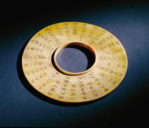 环形玉器。来自中国北京,制于公元前1200年,题刻于公元1790年