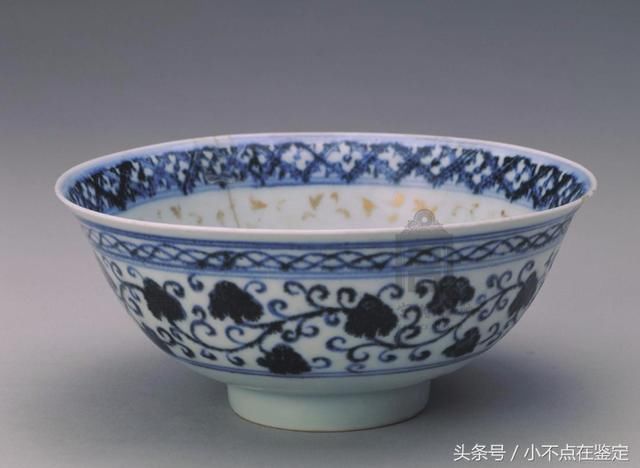 永乐苏料青花加金彩缠枝苜蓿花纹碗