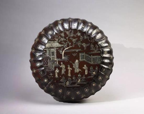 螺钿是用螺、蚌的外壳在漆器表面加以装饰的工艺,有厚螺钿和薄螺钿两种类型。厚螺钿镶嵌始于西周时期,至唐代乃臻妙境。宋元时期螺钿工艺精进,钿片渐薄,佳作迭出。主要景物所嵌钿片呈块状,并以浅刻表现人物的神态、衣纹等,花草精细密致,意境如画。明代螺钿名目更多,文彩更繁,螺钿工艺迎合市场需求,呈现五色纷缊、光彩夺目的视觉效果。清代螺钿精益求精,尤善区分壳色,钿片薄如蜂翼,细若秋毫;普遍采用点螺工艺,局部片嵌金花,细填螺锦;其构图、配色模拟书画趣味,随彩而施,光华可赏。